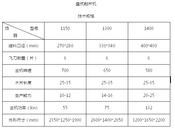 盤式削片機主要用途為造紙廠、硅廠、高密度板廠、香菇菌等削片加工的專用設備,加工原料廣泛于各種樹木及竹子,機型分XT1000、XT1200、XT1400、XT1600、XT1800型,刀片數量常用為3--6片,可與木材剝皮機組成流水線使用,產量每小時8--30噸。